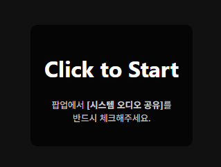 참고적으로 화면 맨 아래 가운데에 다음과 같이 오디오 공유 중임을 알리는 웹 브라우저 창이 하나 더 뜬다. 오른쪽의 숨기기 버튼을 누르면 최소화되며, 작업 표시줄에서 창 이름을 눌러서 다시 표시할 수 있다.